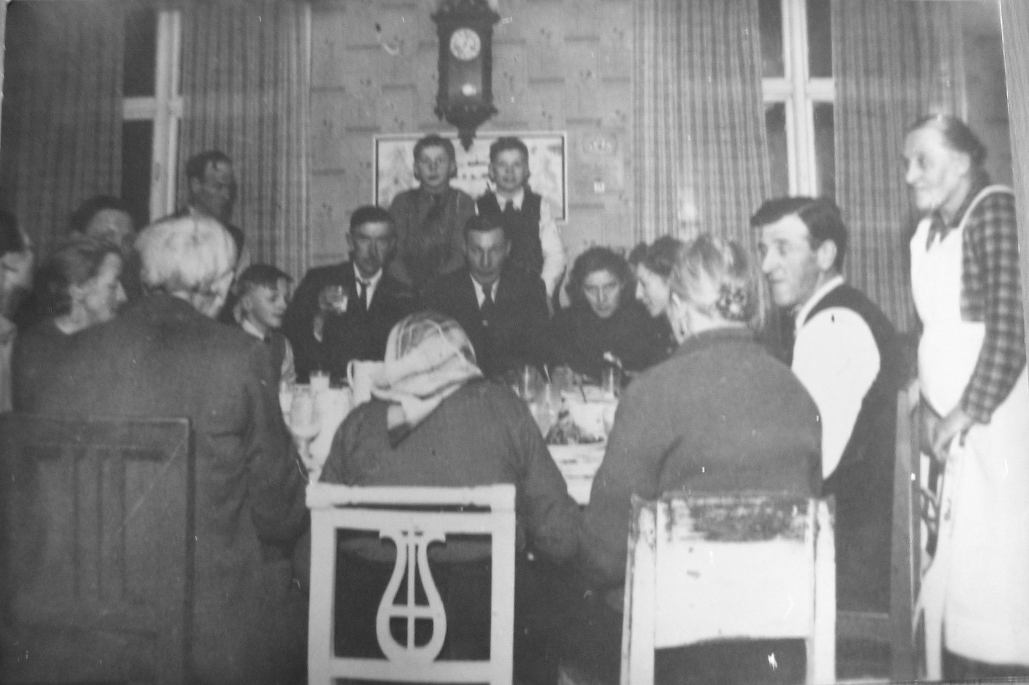 Maria Albertina (Andersson) Selberg standing at the right of the picture behind Gustav her third son. Standing in front of the window is Felix, father of Bengt and Berit. Woman to the far left is Elisabeth daughter of Maria. Woman sitting looking at camera is Ingegerd daughter of Gustav.