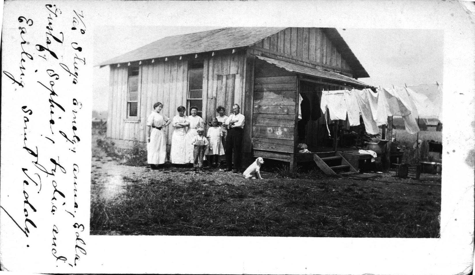 Text: "Our cottage Emily, Anna, Edla, Gustaf, Sophie, Lydia and Earling
