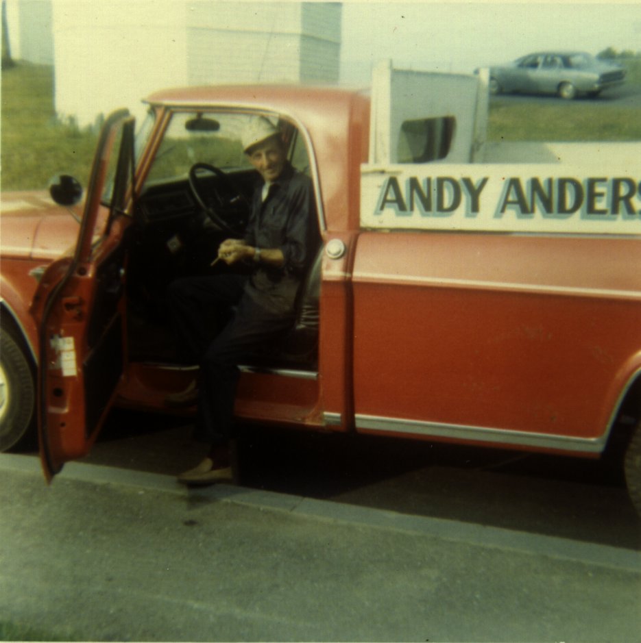 Raymond Anderson, date unknown, perhaps 1970s. I recognize the bandstand in the background, this is in front of the house on Main street in Monson.
