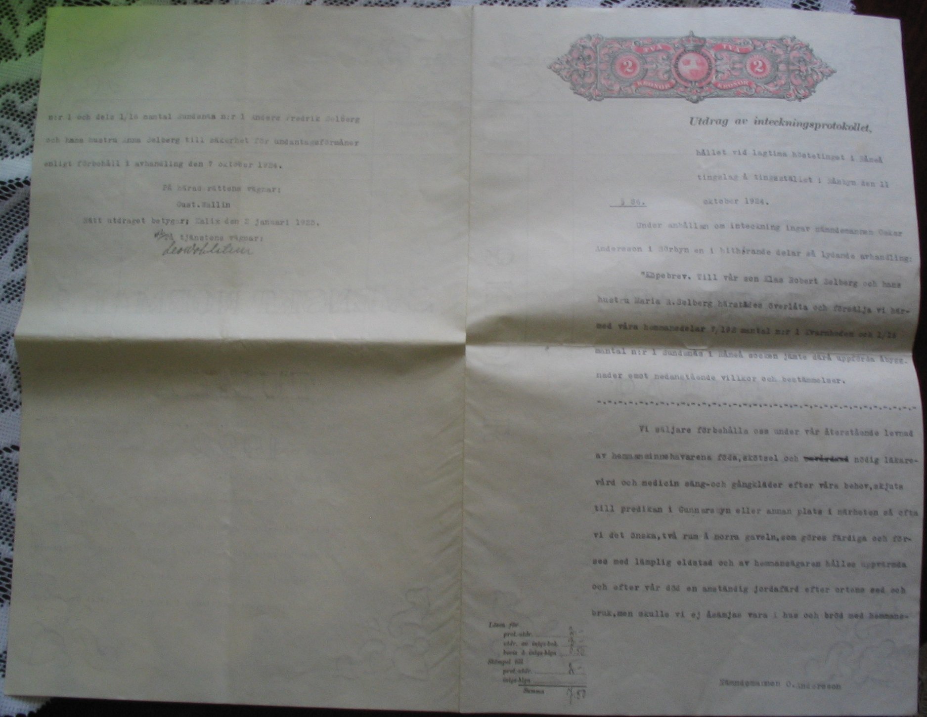 Klas and Maria Selberg from Klas's parents. A very interesting document