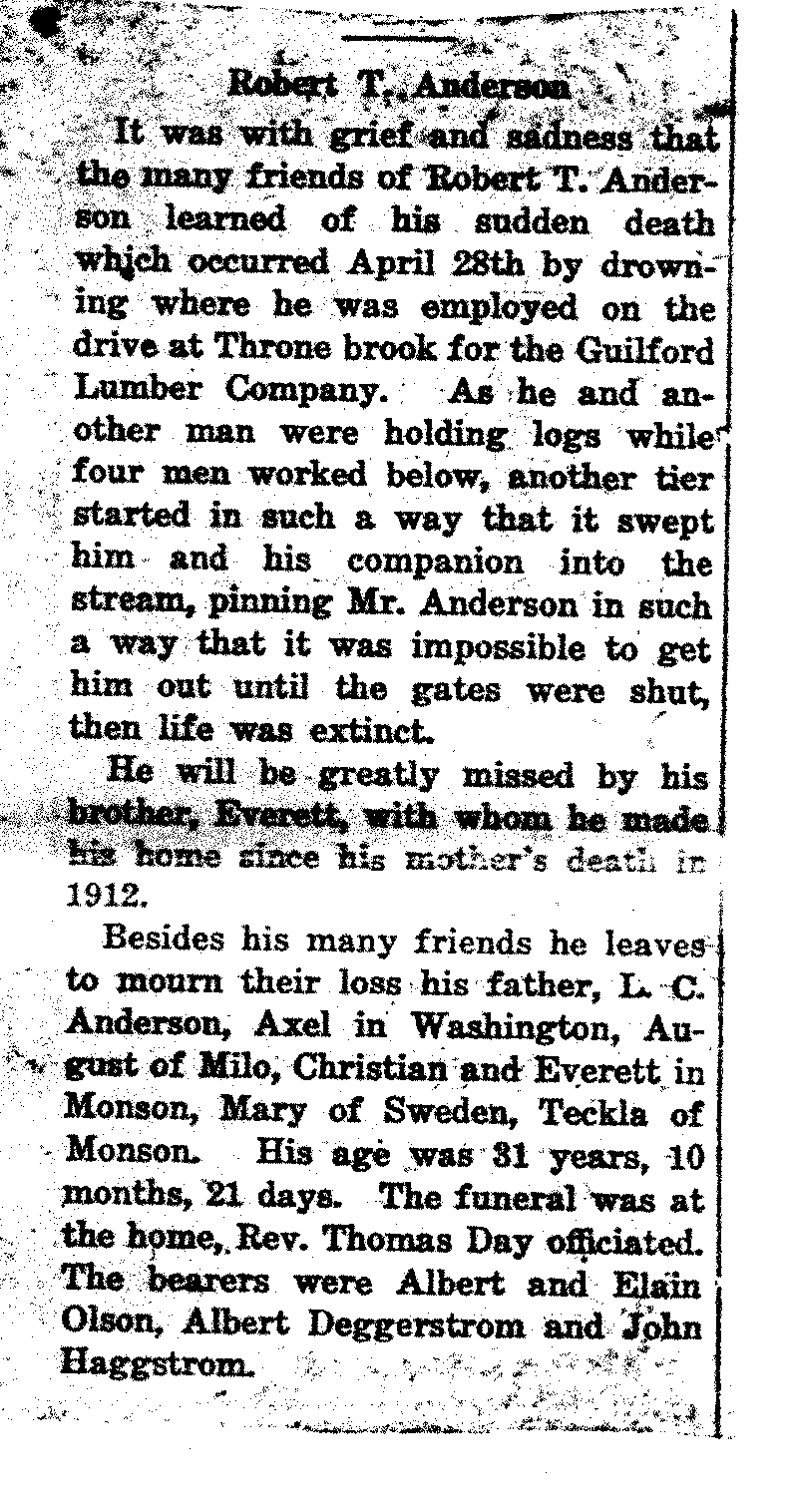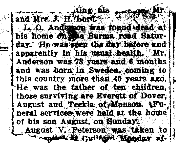 I've added a scanned copy of the 1900 census for Piscataquis county. There is a reference to Lars Olof Anderson and family on page 199a.