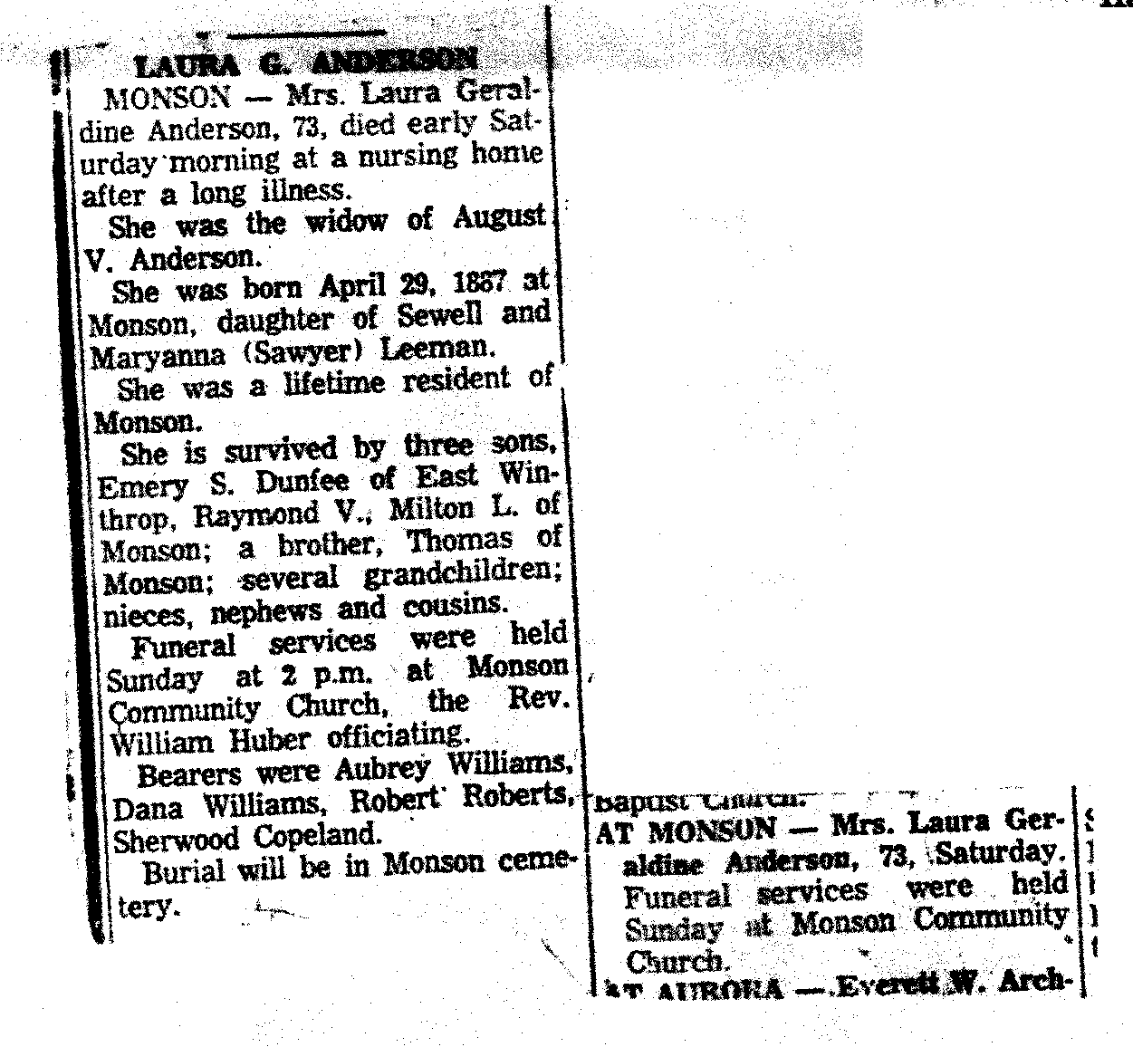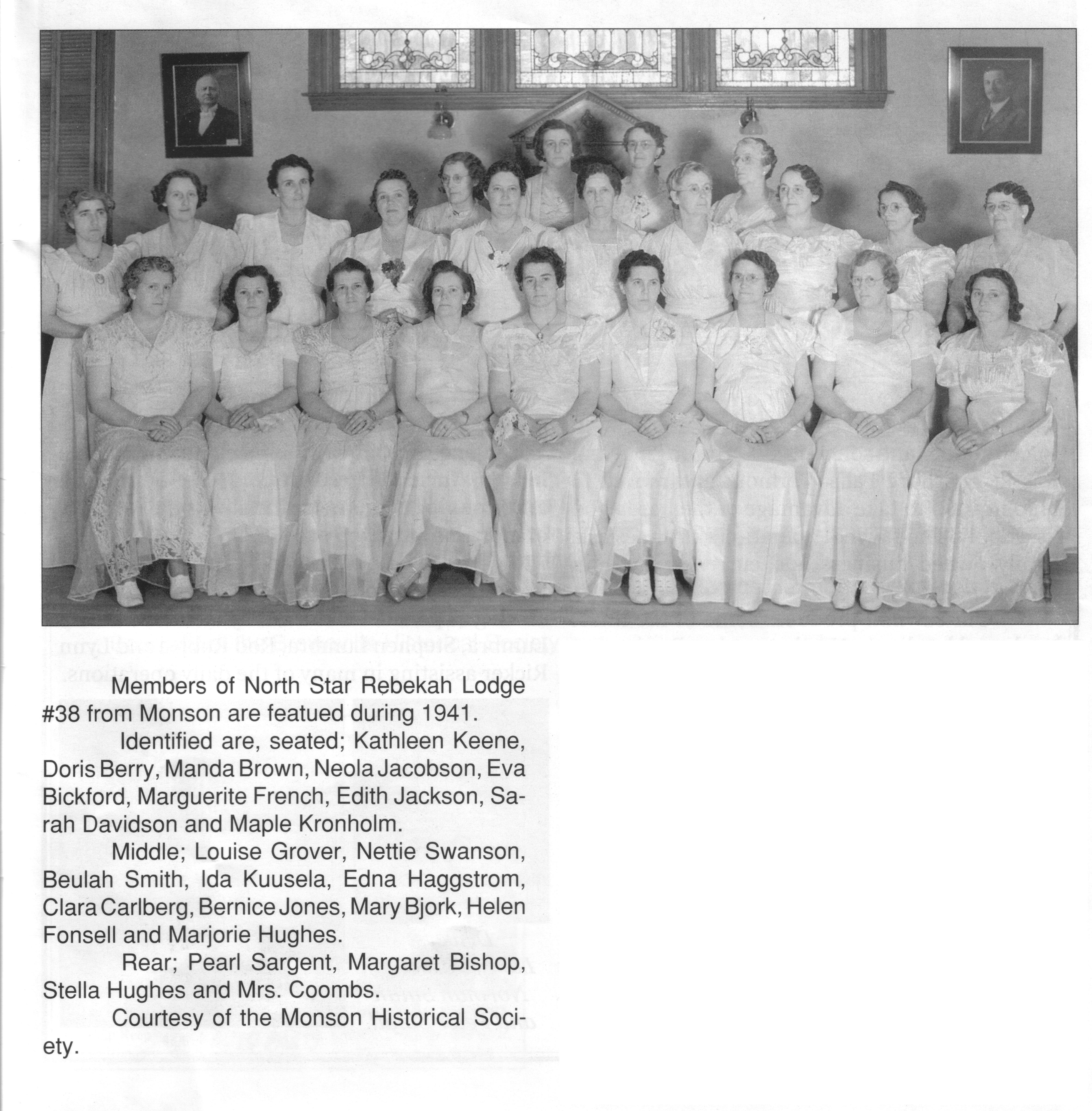 - Picture of the Rebeccas in 1941 including Eva Anderson (Identified here by her married name Bickford), Daughter of Ida Anderson. This was scanned from a magazine. The Monson historical Society has the original.