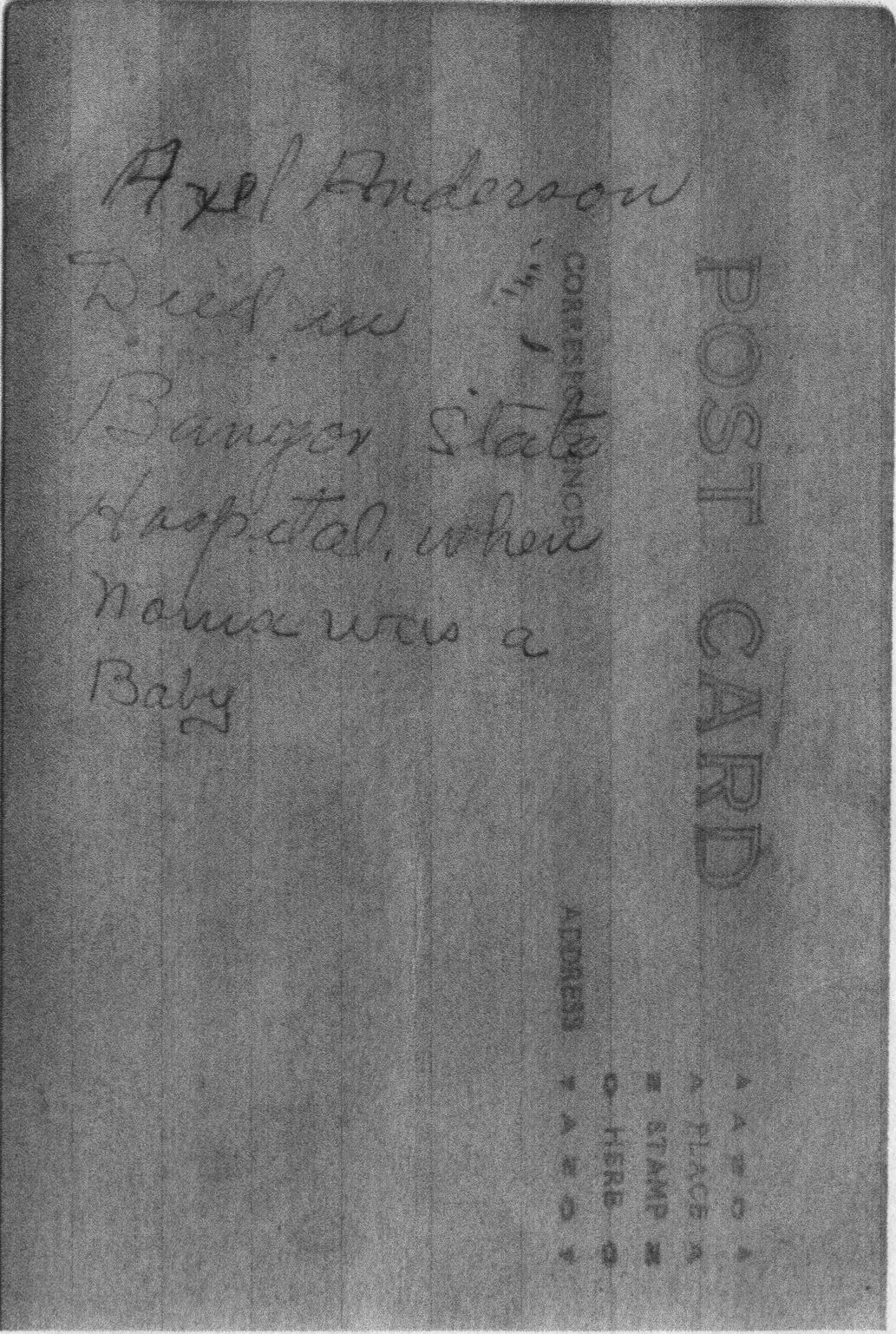- A better copy of the postcard (the front anyway) showing a picture of Axel Anderson and an unknown woman (date unknown).