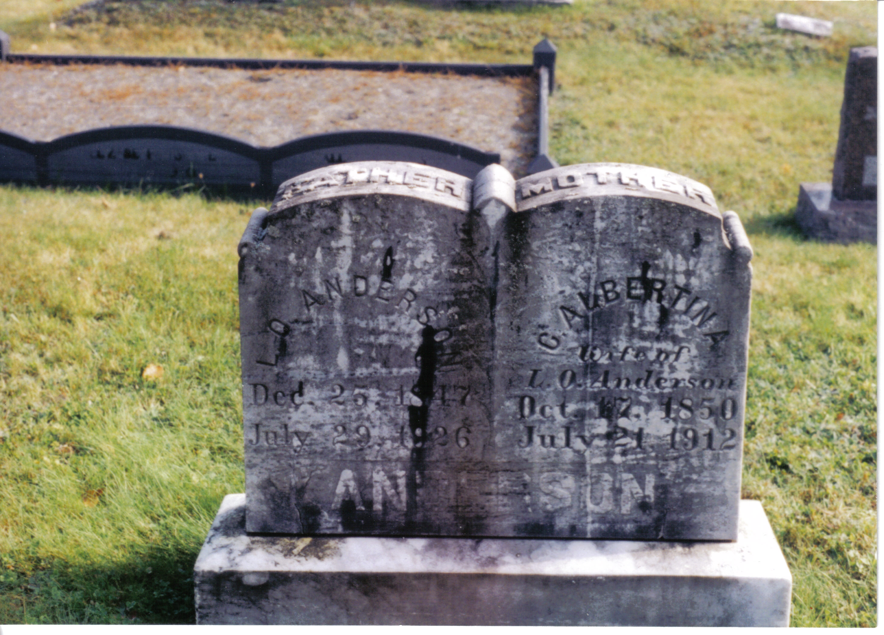 - Photograph of the gravestone of Lars Olof and Albertina Anderson.
