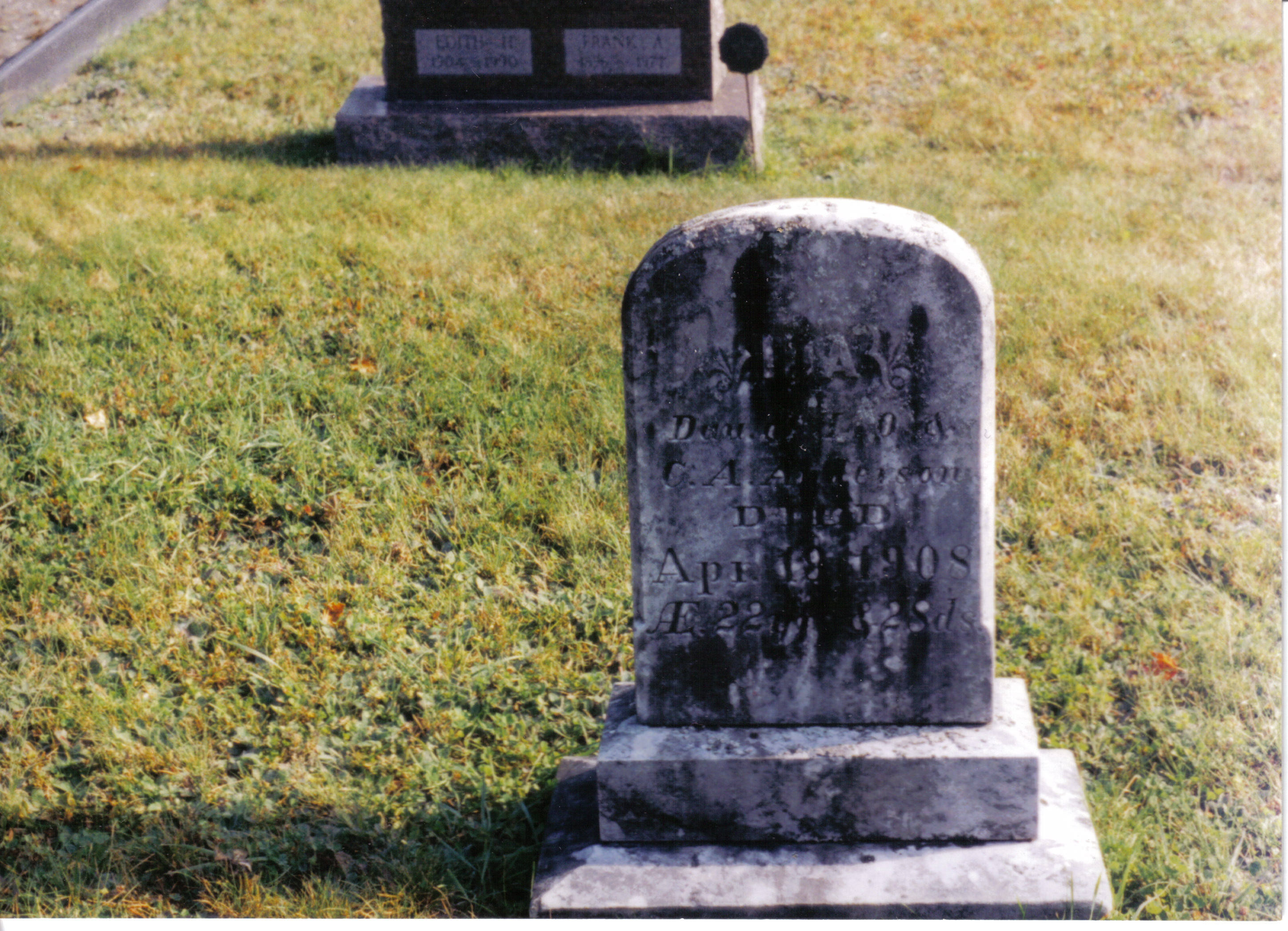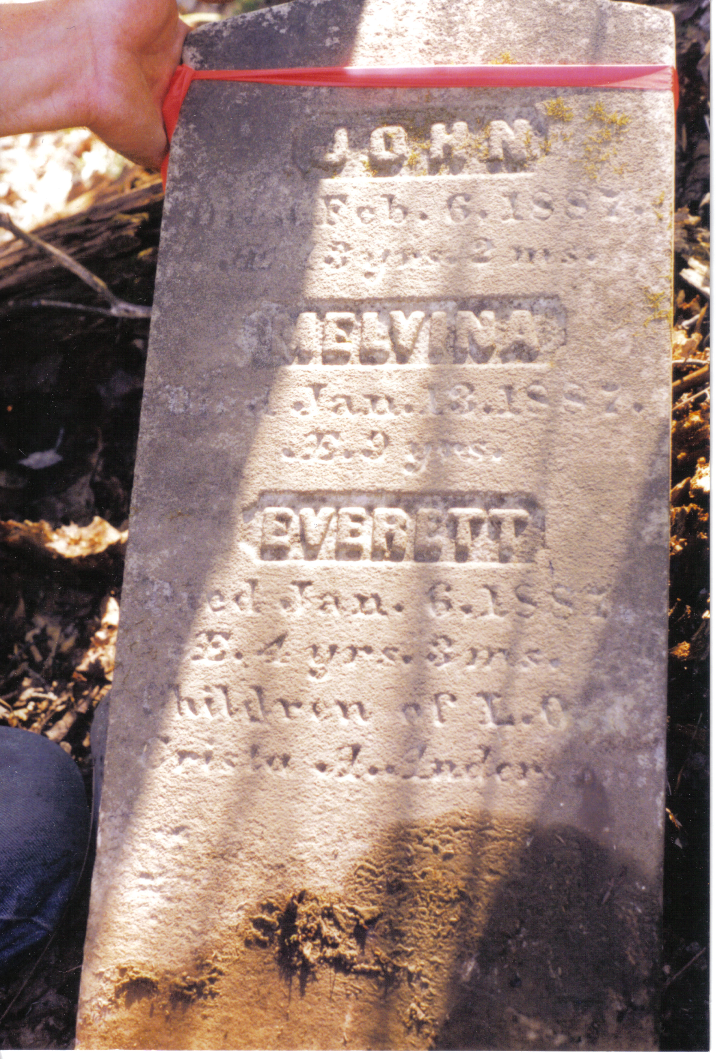 - Photograph of the gravestone of three of Lars Olof and Albertina Andersons children who died young: John, Melvina and Everett.